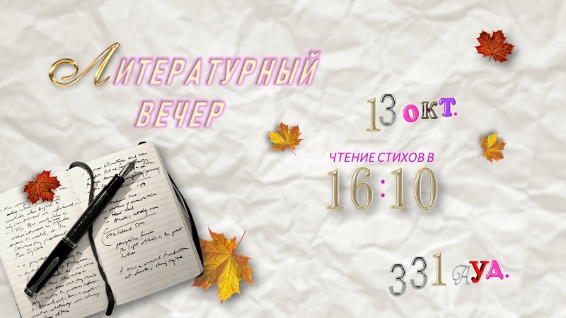 Литературный вечер. Чтение стихов. Мастер класс по писательскому искусству. Обсуждение